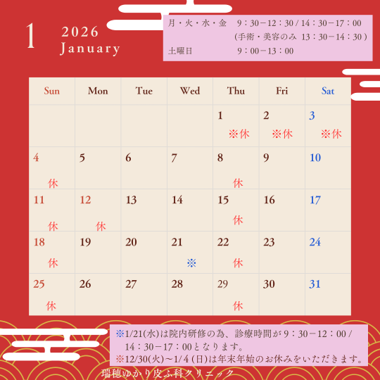 1月診療日のご案内
